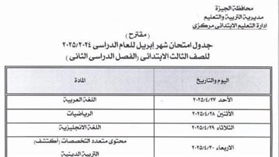جداول اختبار شهر إبريل لصفوف النقل لجميع المراحل بالبحيرة