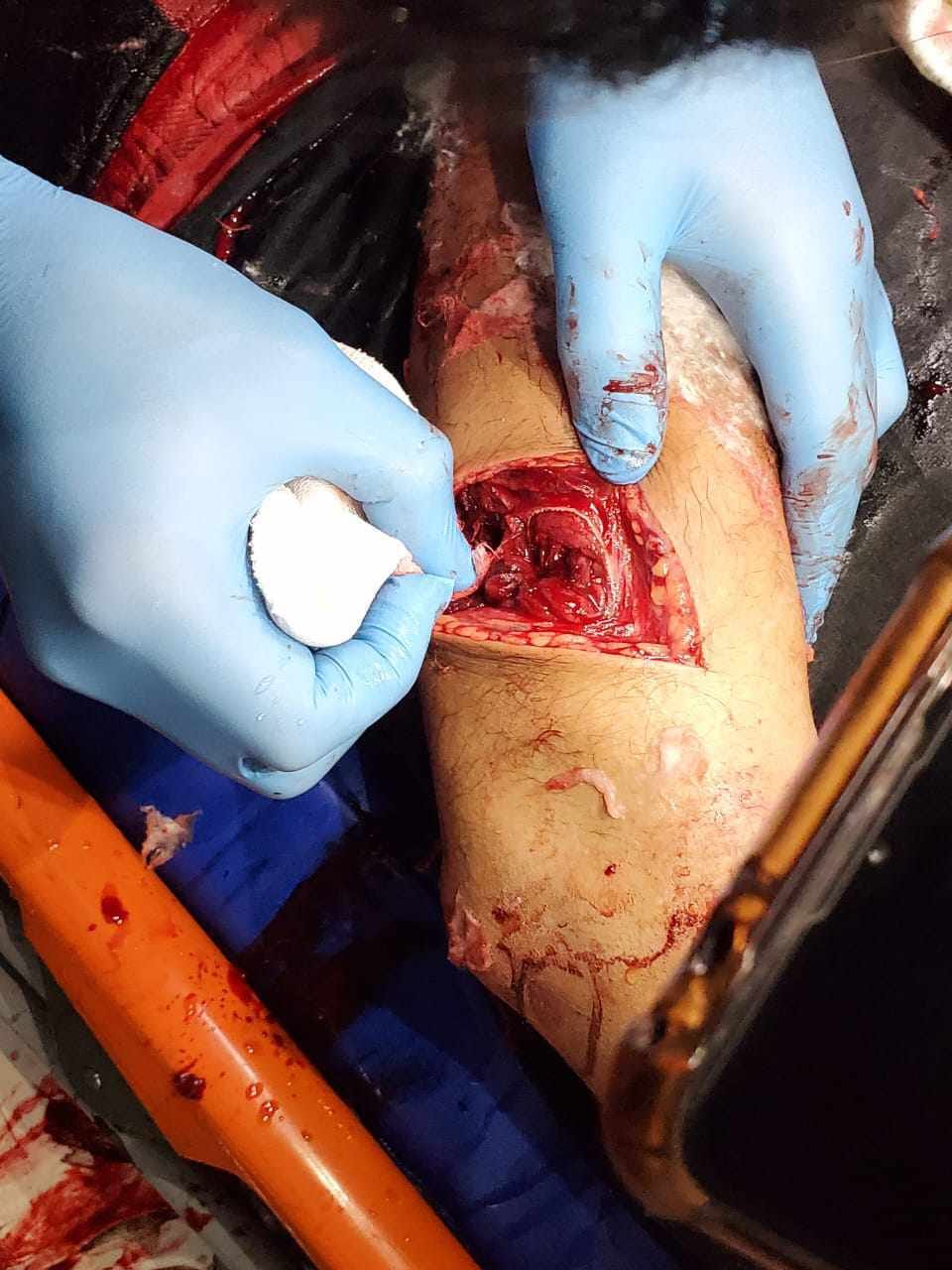 وجاء في التقرير الطبي الصادر عن الدكتور محمد سليمان عمارة، إخصائي جراحة عامة، أن المصاب (م.م)، يوجد به جروح قطعية متعددة بالزراع الأيمن والقدم اليمنى وتم عمل دوبلر على أوردة وشريين السابق الايمن وتم عمل قياس للسكر والضغط وتم خياطة الجرح تحت تأثير المخدر.