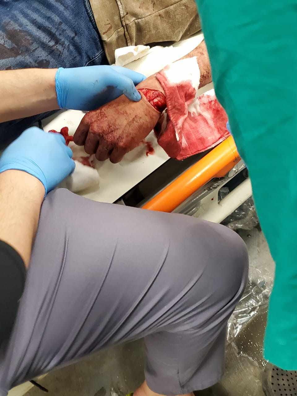 وبإجراء الكشف الطبي على المصاب( ا.ح.م ) من قبل الدكتور مصطفى سلام تخصص جراحة وجه وفكين، تبين أن المصاب تلقى طعنات أدت إلى جرح قطعي بالساعد الأيسر وتم عمل قياس للسكر والضغط وتم خياطة الجرح تحت تاثير المخدر الموضعى، وأصيب بكسر بالذراع الأيمن.