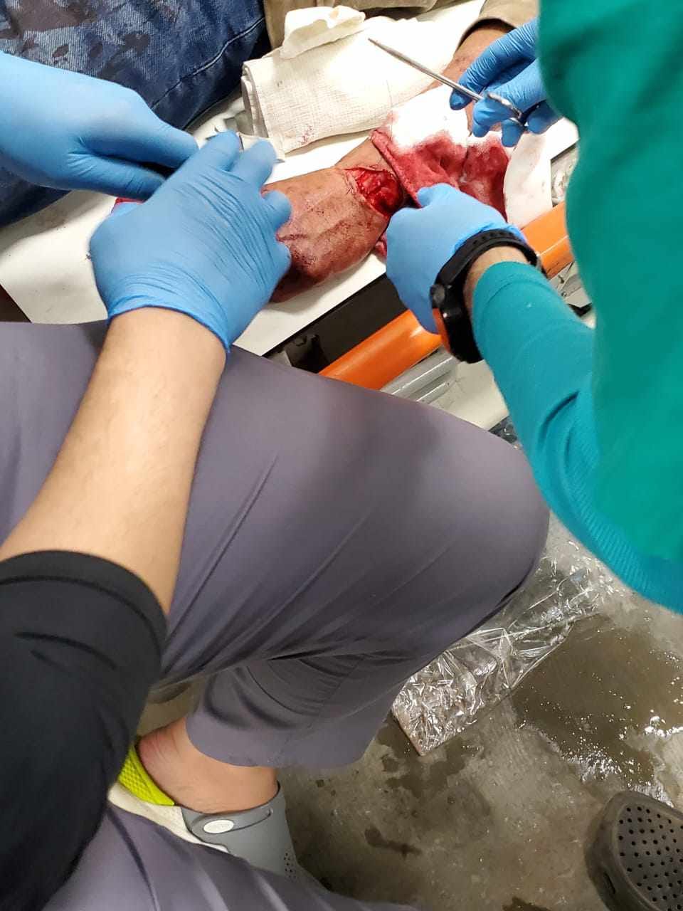 وبتوقيع الدكتور أحمد اسماعيل أخصائي جراحة أوعية دموية بالكشف الطبي على المصاب “ا.د.ه.م”، تبين أنه مصاب جرح قطعي بالجزء الخلفي للرسغ الأيسر وتم عمل قياس للسكر والضغط وتم خياطة الجرح تحت تأثير المخدر الموضعي وخروج ومتابعة بالعيادة الخارجية.