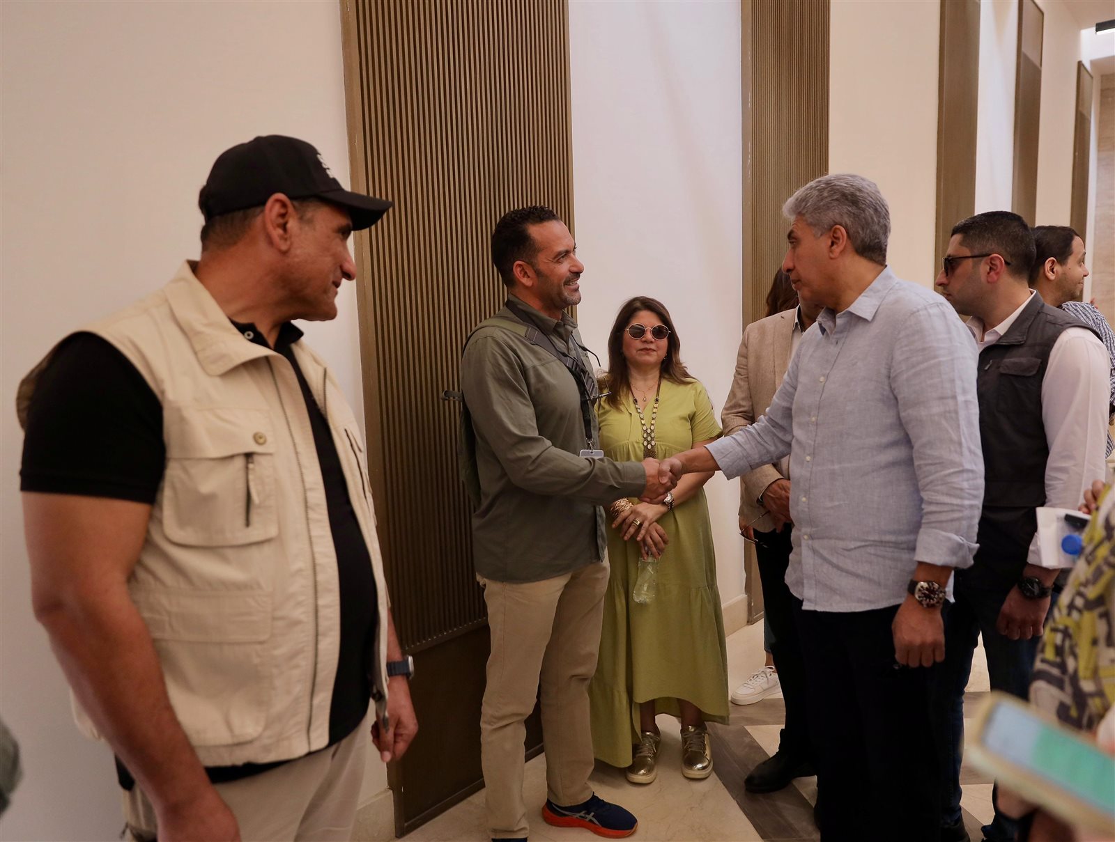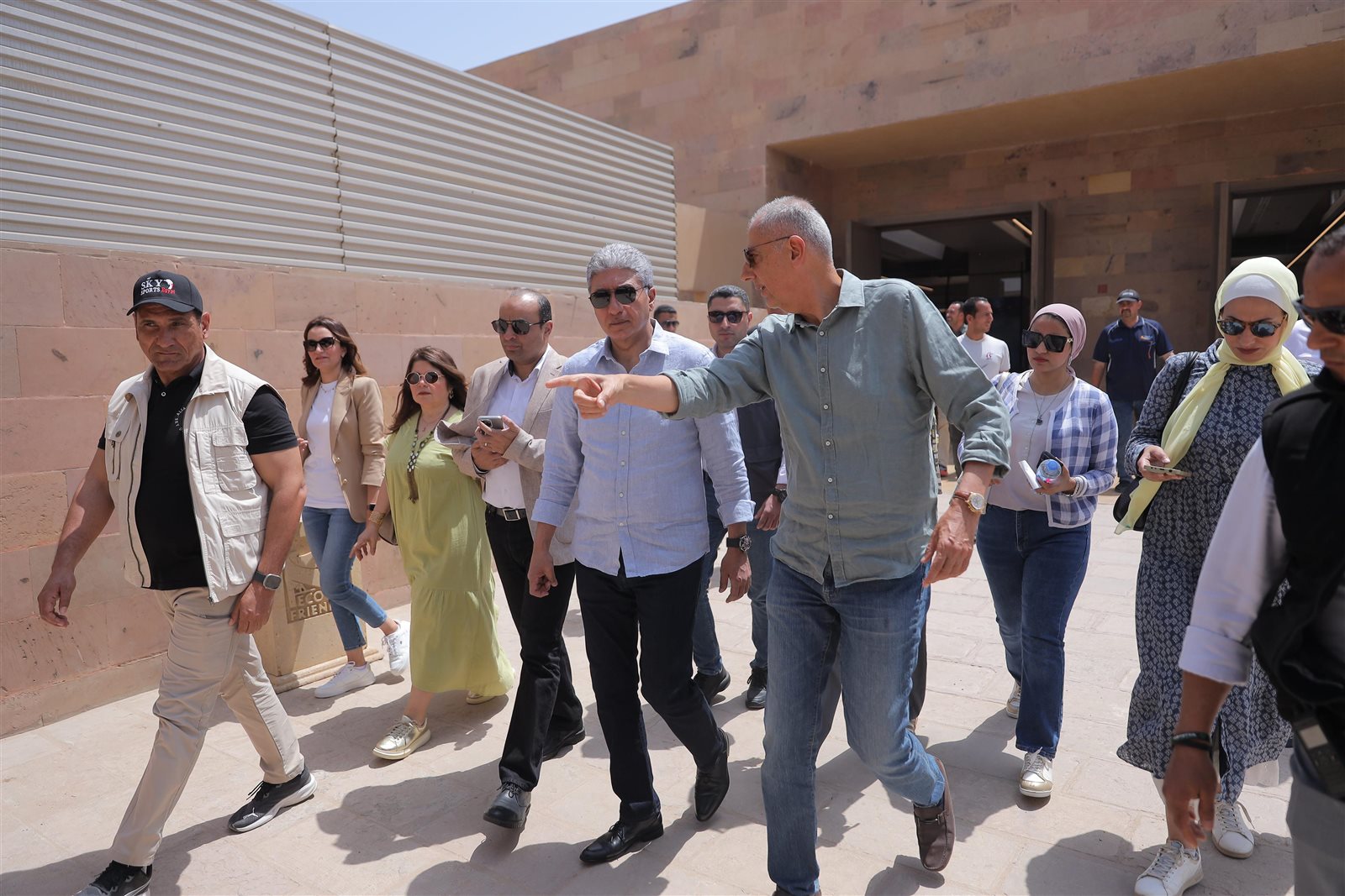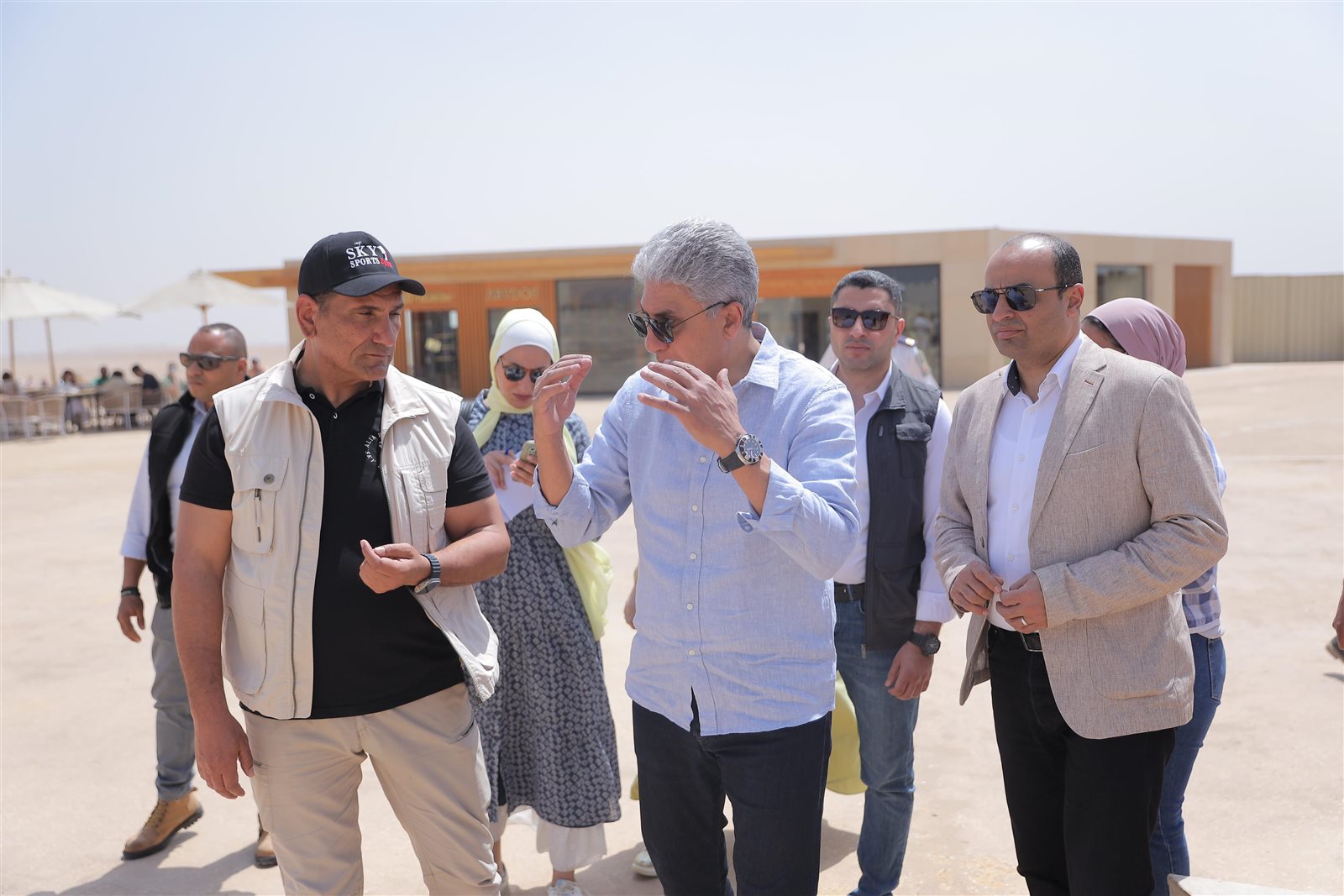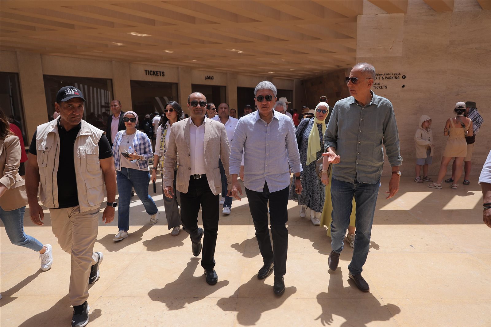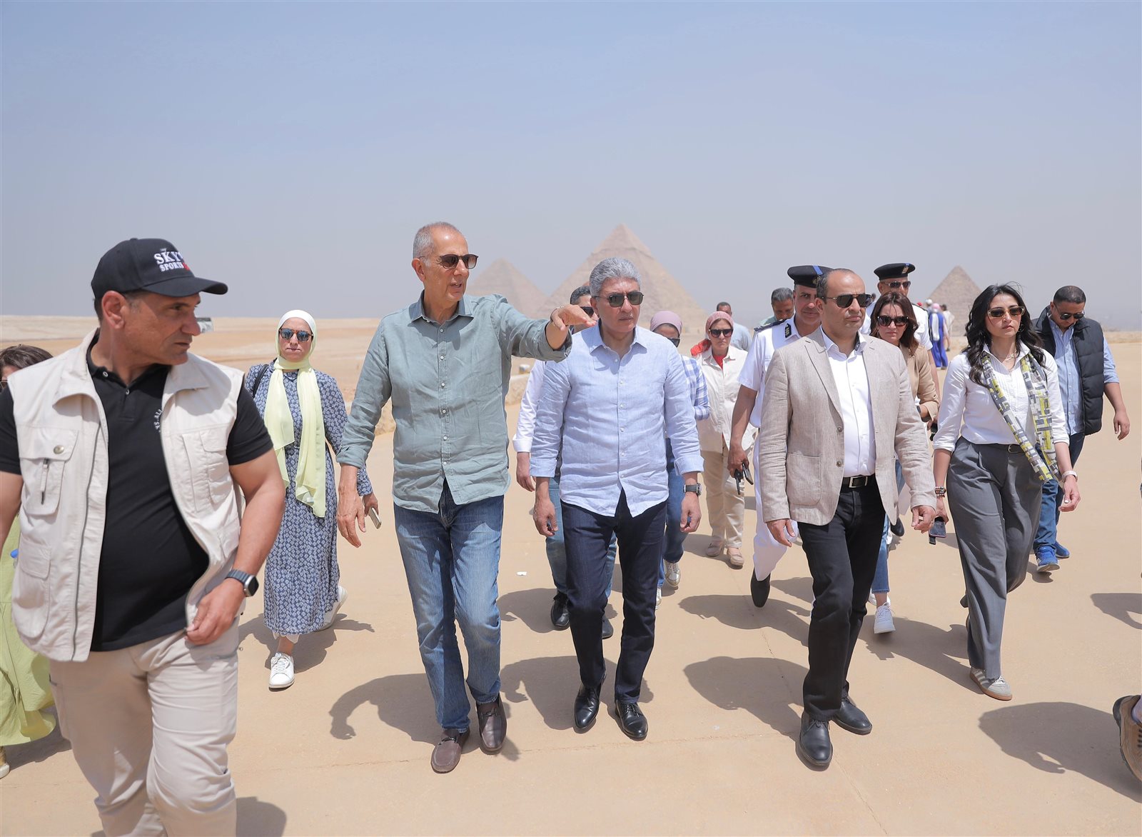 وقد رافقه خلال الجولة هند عبد الحليم نائب محافظ الجيزة، والدكتور محمد إسماعيل خالد الأمين العام للمجلس الأعلى للآثار، والمهندس عمرو جزارين رئيس مجلس الإدارة التنفيذي لشركة أوراسكوم بيراميدز للمشروعات الترفيهية، وأشرف محيي مدير عام آثار القاهرة والجيزة، وعدد من قيادات الوزارة والمحافظة والشركة المنفذة للمشروع.