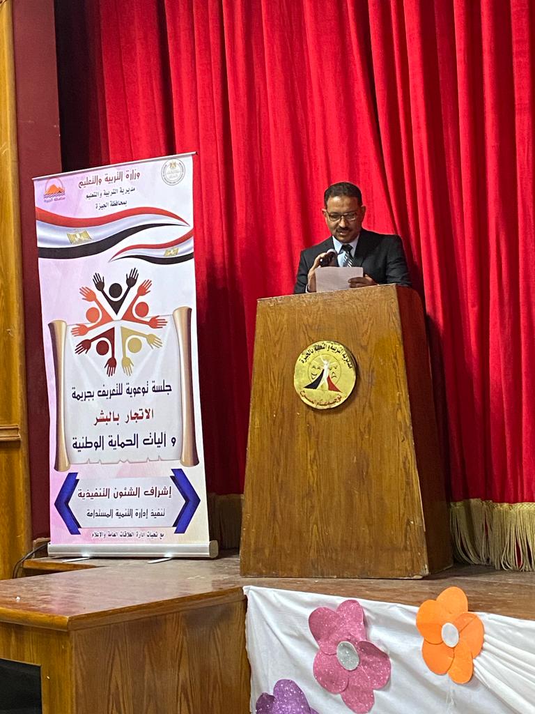 نظمت مديرية التربية والتعليم بمحافظة الجيزة ندوة توعوية للتعريف بمخاطر الهجرة غير الشرعية وجريمة الاتجار بالبشر.