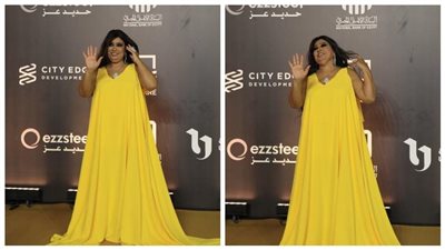 وظهرت «فيفي» بفستان أسود طويل، عار الصدر والكتفين، وله كم أبيض منفصل.