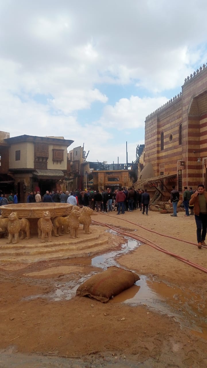 حريق بديكور مسلسل ألف ليلة وليلة بالحي الشعبي بمدينة الإنتاج الإعلامي "صور"