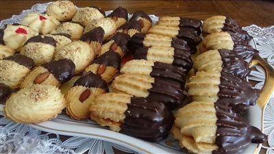 6-اتركي البسكويت دون تحريك على الصينية حتى يبرد تماما، ثم يرفع من على الصينية، ويحفظ في علبة جيدة الغلق وقدميه لأفراد أسرتك وبالهناء والشفا.