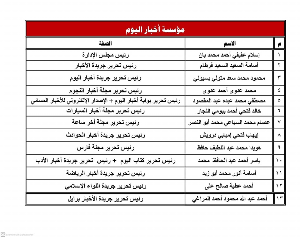 وقد شملت حركة التغييرات الصحفية الأسماء الآتية: