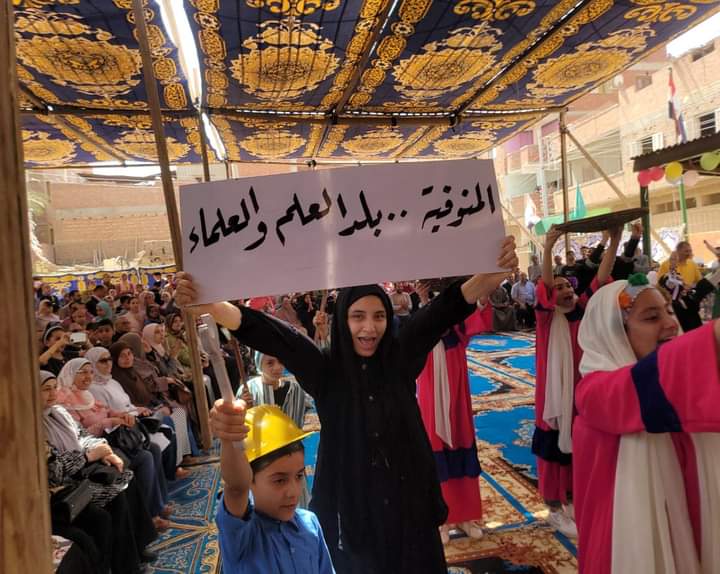 بدأ الاحتفال بالسلام الوطني، ثم الاستماع إلي تلاوه قرآنية، ثم عرض لبعض الفقرات الفنية، وبعض الاستعراضات للطلبة، وأوبريت عن المنوفية، وقصيدة دينية في مدح الرسول عليه الصلاة والسلام، ثم كلمة مديرة الإدارة للترحيب الضيوف.