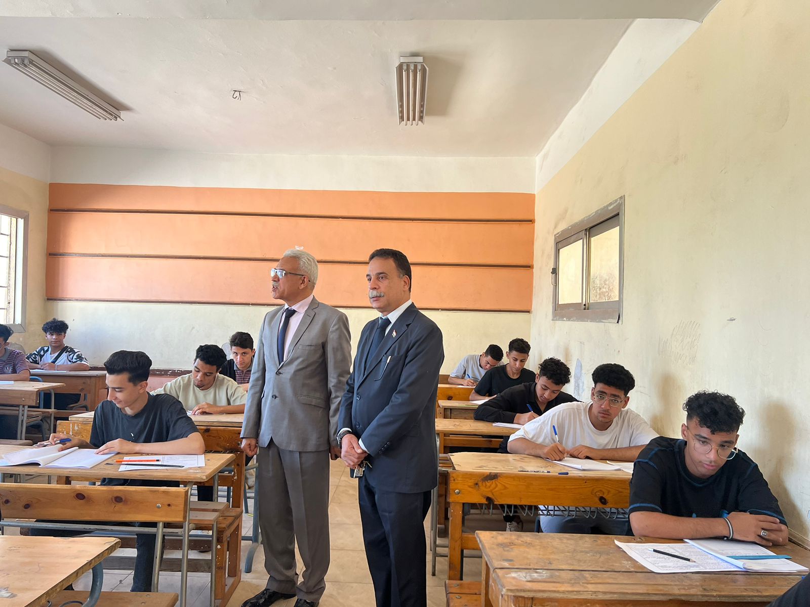 واطمأن "موسى" من الطلاب على مستوى الامتحان، حيث أوصى بتهيئة مناخ مناسب من الراحة والتهوية الجيدة للطلاب لتمكينهم من تأدية الإمتحانات فى سهولة ويسر، كما تأكد من وجود زائرة صحية داخل اللجان للاطمئنان الدائم على الطلاب.