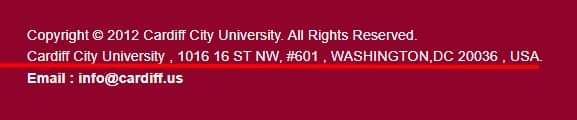 وأضافت FactCheck  أنه بالنظر في موقع جامعة كارديف سيتي وجدنا أن الجامعة الوهمية استخدمت صورة على موقعها الالكتروني باعتبار أنها لحرم الجامعة، ولكن الصورة لكلية Trinity التابعة لجامعة كامبريدج (Trinity College Great Court)، والعنوان المنشور في الموقع الالكتروني للجامعة الوهمية أيضا يخص مبنى لتأجير المكاتب لإنشاء الشركات في الولايات المتحدة الأمريكية ويمكن البحث عنه هنا
