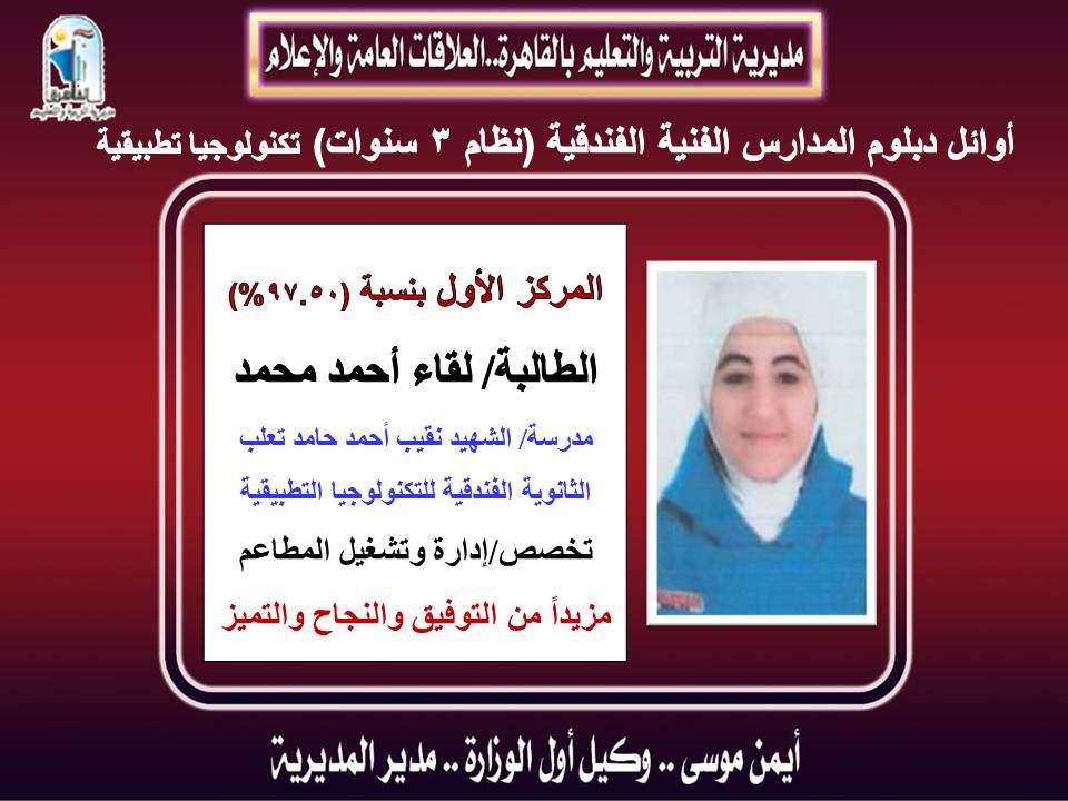 المدرسة: الشهيد نقيب أحمد حامد تعلب الثانوية الفندقية للتكنولوجيا التطبيقية