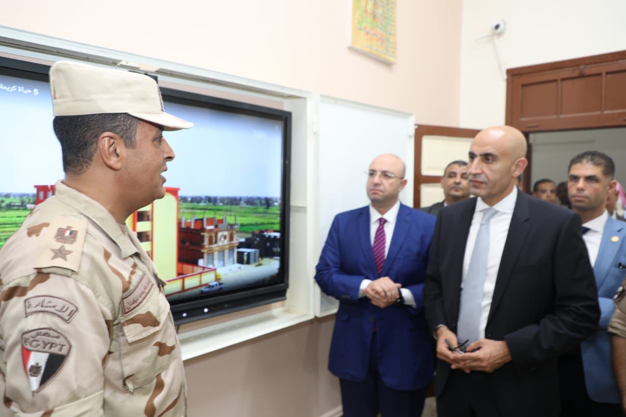 وتفقد الوزير والمحافظ قاعات رياض الأطفال، وفصول المدرسة، وحجرة المكتبة، ومعمل العلوم، والكمبيوتر.