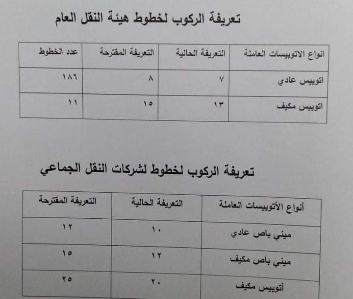 تعريفة ركوب السرفيس والنقل العام في الأقاليم والقاهرة