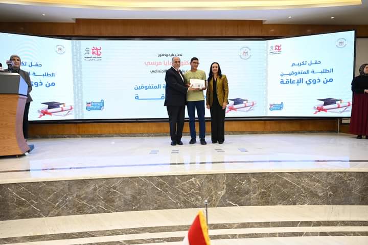 في إطار مبادرة رئيس الجمهورية للتنمية البشرية " بداية جديدة لبناء الإنسان" شهدت الدكتورة مايا مرسي وزيرة التضامن الاجتماعي حفل تكريم الطلاب المتفوقين من ذوي الاعاقة، حيث كرمت عدد 26 طالبا وطالبة من أوائل الثانوية العامة "فئة الدمج" مكفوفين، والدبلوم الثانوي الفني للصم وضعاف السمع من ذوي الإعاقة، قدمت لهم شهادة تقدير وهدايا عينية، وذلك في اطار حرص وزارة التضامن الاجتماعي على دعم الأبناء من ذوي الإعاقة.