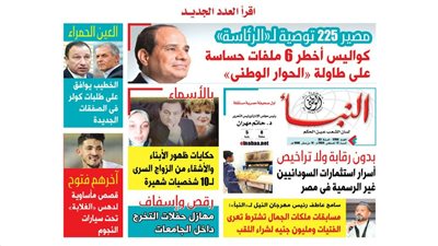 تنشر جريدة «النبأ» في عددها الجديد رقم 1797 الذى سيصدر بتاريخ السبت 14 سبتمبر مجموعة من التقارير والتحقيقات التي تتناول أخطر الأحداث على الساحة السياسية، ومنها: