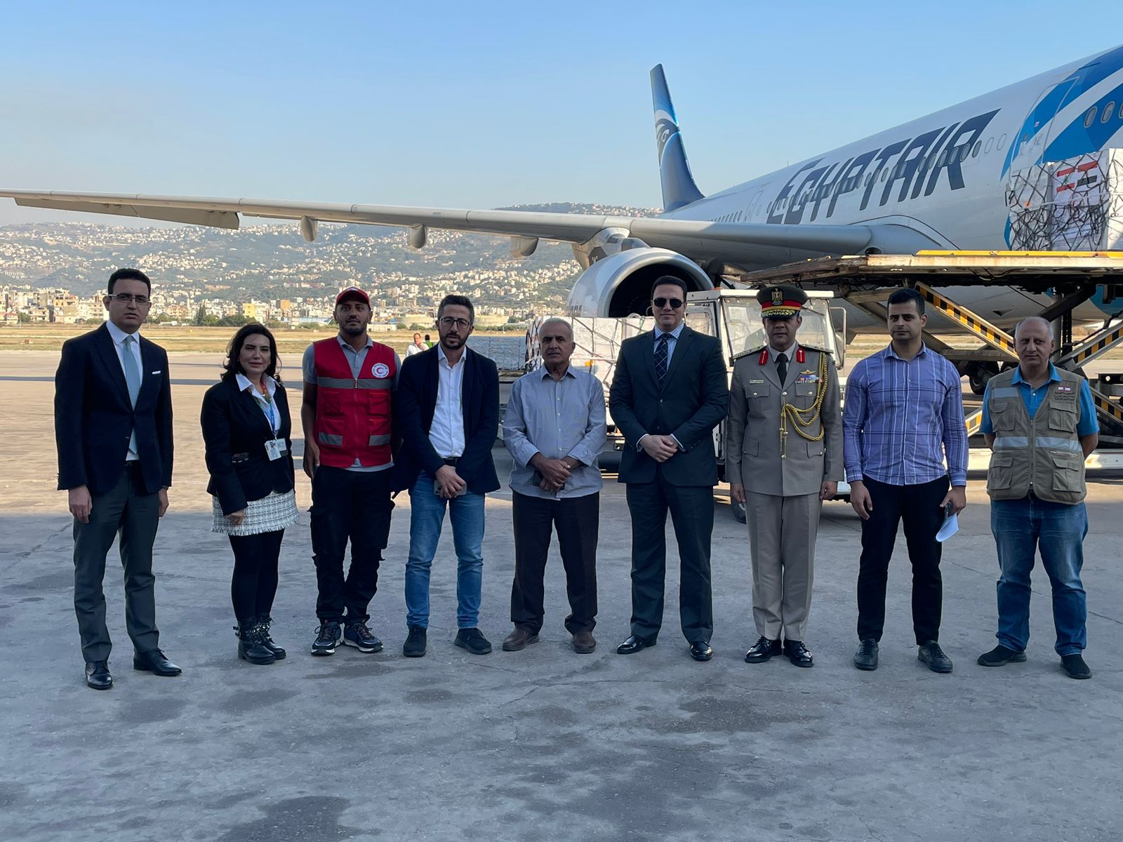 وكان في استقبال الشحنة السفارة المصرية فى لبنان ومن الجانب اللبنانى ممثلين عن الحكومة اللبنانية وهيئة الإغاثة اللبنانية.