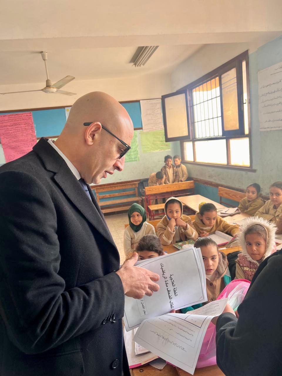 وخلال تفقده للفصول، حرص الوزير على متابعة نسب حضور الطلاب بكل فصل، وكراسات الحصة والواجبات المدرسية، كما حرص على التأكد من ومدى استيعابهم للمواد الدراسية.