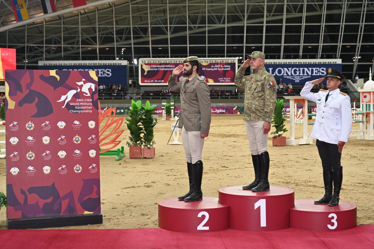 أسفرت نتائج منافسات اليوم الأول للفردى لبطولة العالم العسكرية للفروسية لقفز الحواجز رقم 24 المقاومة حاليًا بقطر وتستمر حتى الأول من ديسمبر القادم، عن فوز الفارس شومان رادوكانو من رومانيا بالمركز الأول، وجاء في الثانى الفارس القطرى الملازم أول حمد على العطية ، وحصل على الثالث الفارس موسكيرا سالجادو من الإكوادور.