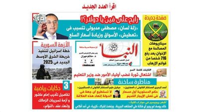 تنشر جريدة «النبأ» في عددها الجديد رقم 1813 الذى سيصدر بتاريخ السبت 4 يناير مجموعة من التقارير والتحقيقات التي تتناول أخطر الأحداث على الساحة السياسية، ومنها: