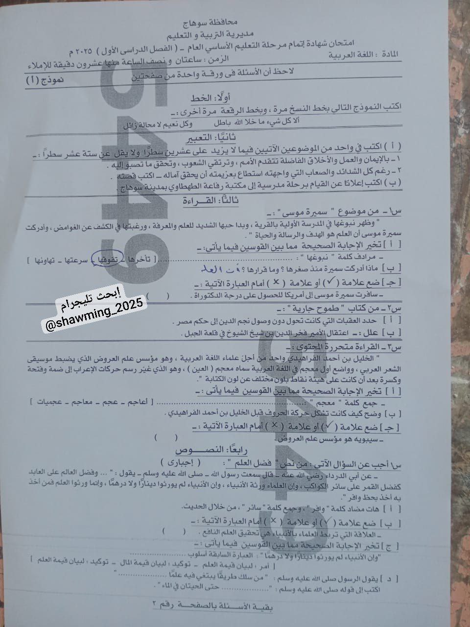 1-الالتزام بمواصفات الورقة الامتحانية، وأن تغطي أسئلة الامتحان الأجزاء التي تم تدريسها فعليا خلال الفصل الدراسي الأول، والابتعاد تماما عن الأسئلة والموضوعات ذات الصبغة السياسية أو القضايا الحزبية والخلافية.