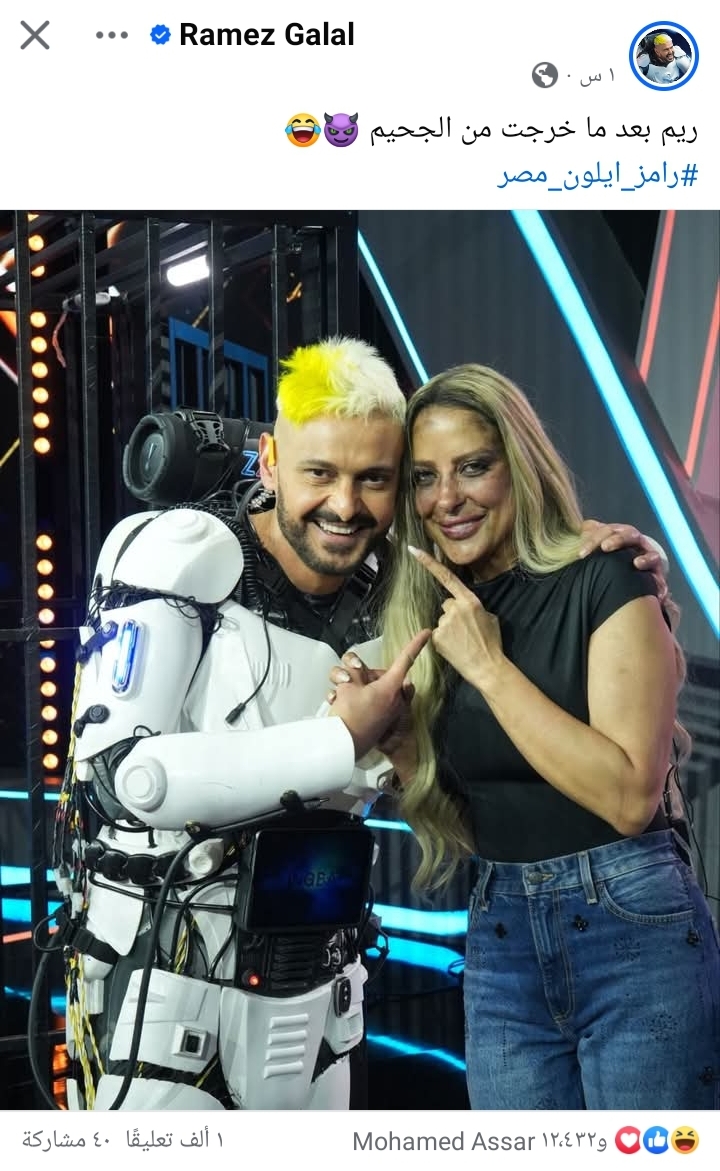 وعلق قائلا: “ريم بعد ما خرجت من الجحيم، رامز إيلون مصر”.