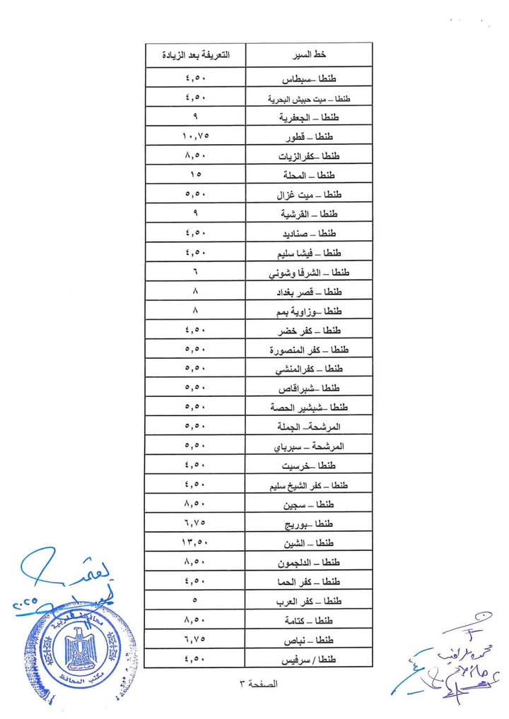 وأكد محافظ الغربية، أن المحافظة تحركت فورًا بعقد اجتماع طارئ مع لجنة تحديد تعريفة الركوب، لبحث انعكاسات الزيادة الجديدة على خطوط النقل، حيث تم إعداد جدول دقيق ومتكامل يراعي عدالة التوزيع بين مسافات الخطوط وتكاليف التشغيل، ويضمن الحفاظ على حقوق المواطن وعدم تحميله أية أعباء إضافية خارج الإطار المقرر.