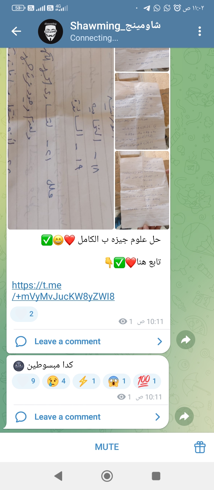 كما قامت جروبات الغش بنشر الإجابة الكاملة لأسئلة الامتحان في الساعة 10:11 صباحًا،