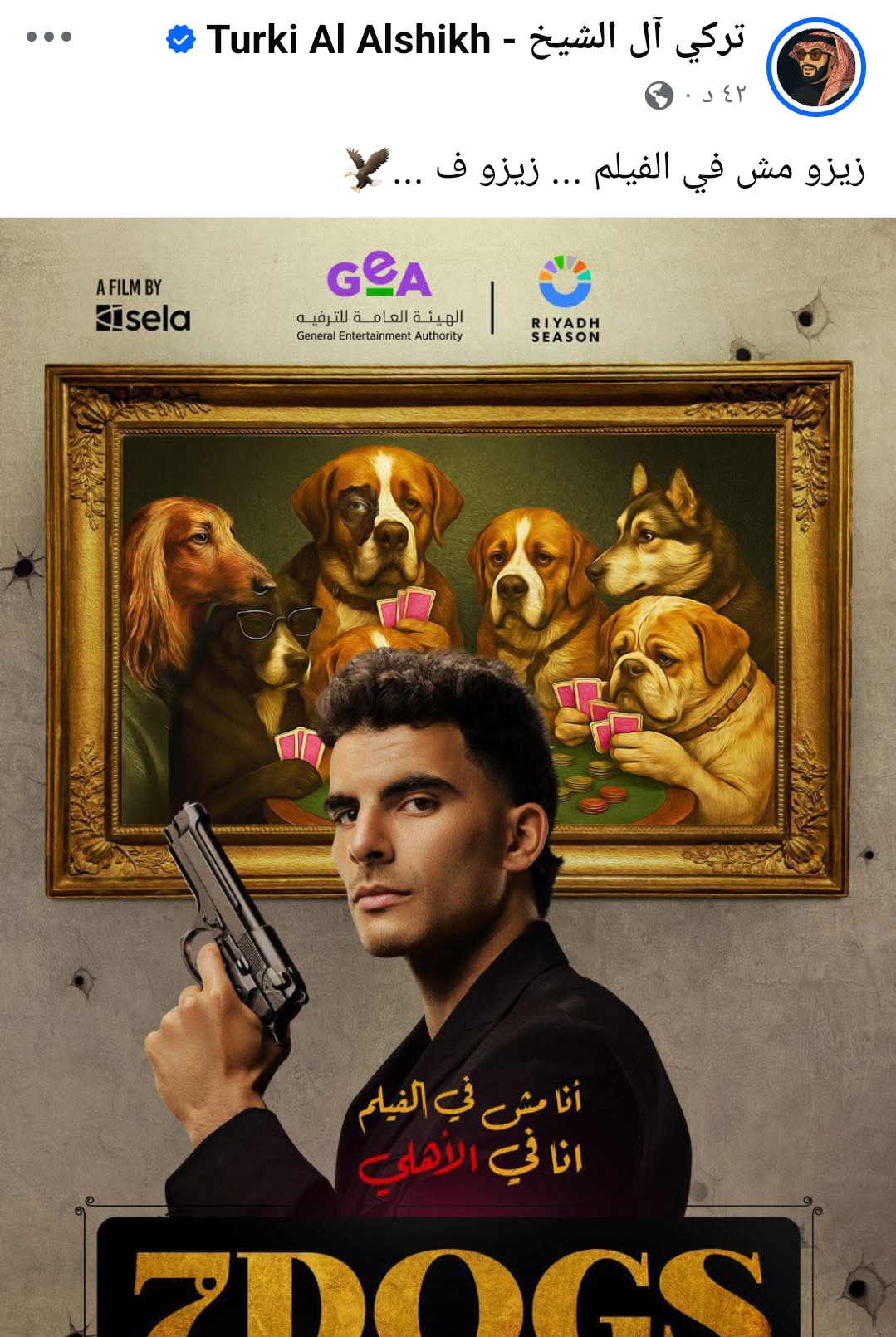 ثم نشر رئيس الهيئة العامة للترفيه، صورة زيزو من بوستر دعائي فيلم 7dogs، مكتوب عليها “أنا مش في الفيلم أنا في الأهلي”، وذلك عبر حسابه الشخصي بموقع التواصل الاجتماعى فيسبوك.