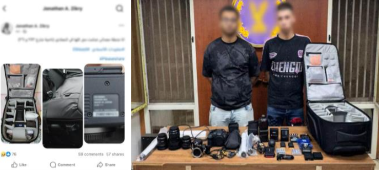 جاء ذلك في إطار جهود أجهزة وزارة الداخلية لكشف ملابسات منشور مدعوم بصور تم تداوله بأحد الحسابات الشخصية بمواقع التواصل الإجتماعى تضمن تضرر صاحب الحساب من تعرضه لواقعة سرقة حقيبة بداخلها معدات تصوير كاملة بالقاهرة.