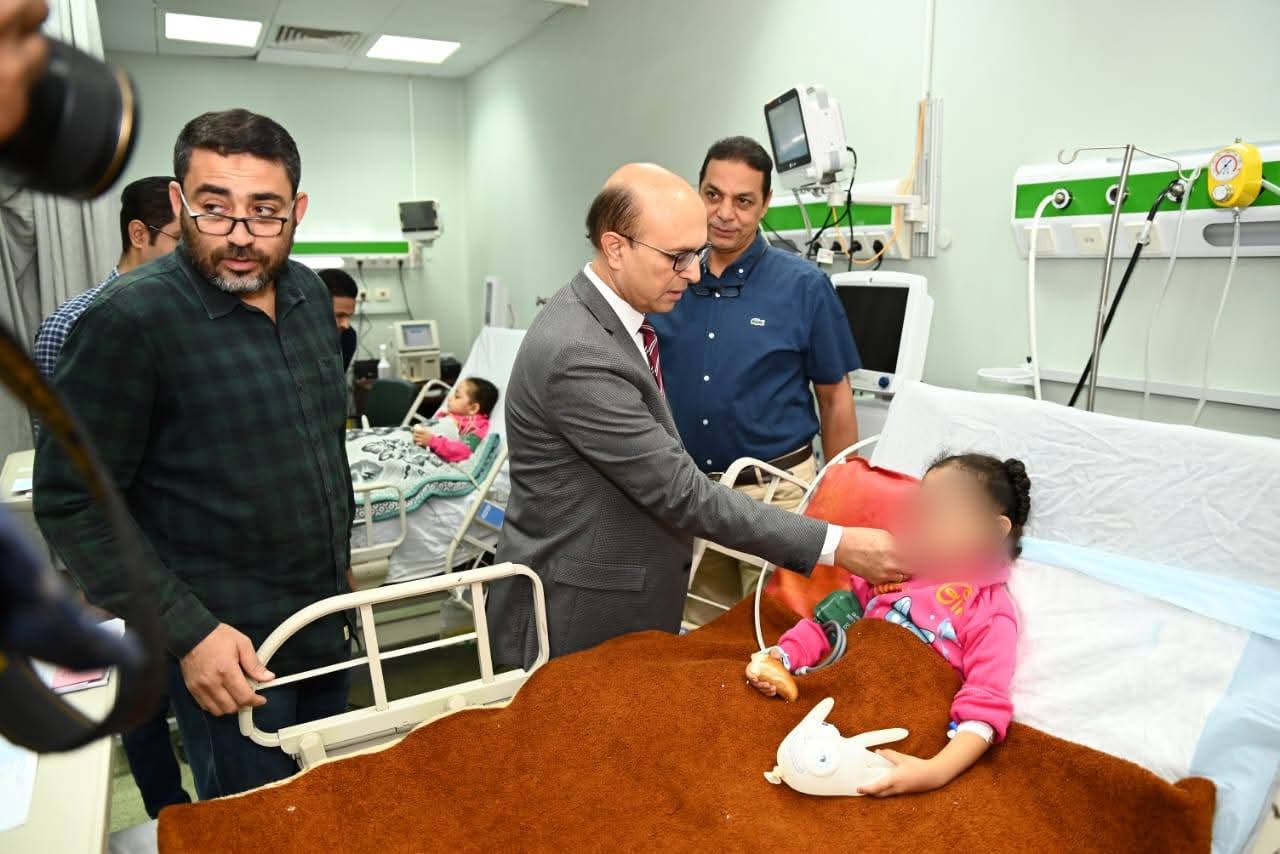 رئيس جامعة أسيوط يزور الأطفال مصابي حادث انقلاب تروسيكل بمصرف بمنقباد