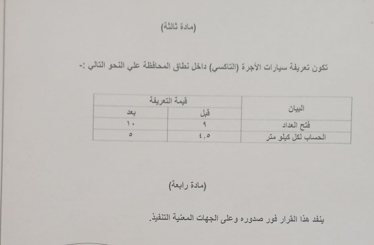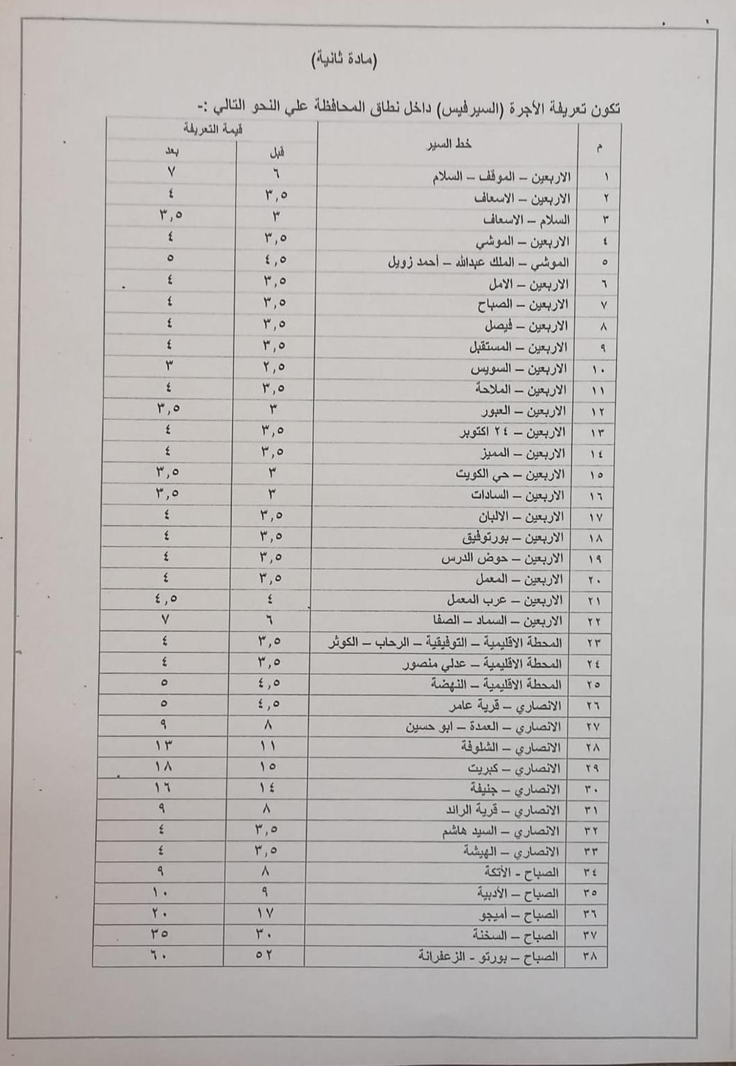 وأوضح المحافظ أنه سيتم محاسبة المخالف لأي قرارات خاصة بالتعريفة الجديدة أو أسعار الوقود.