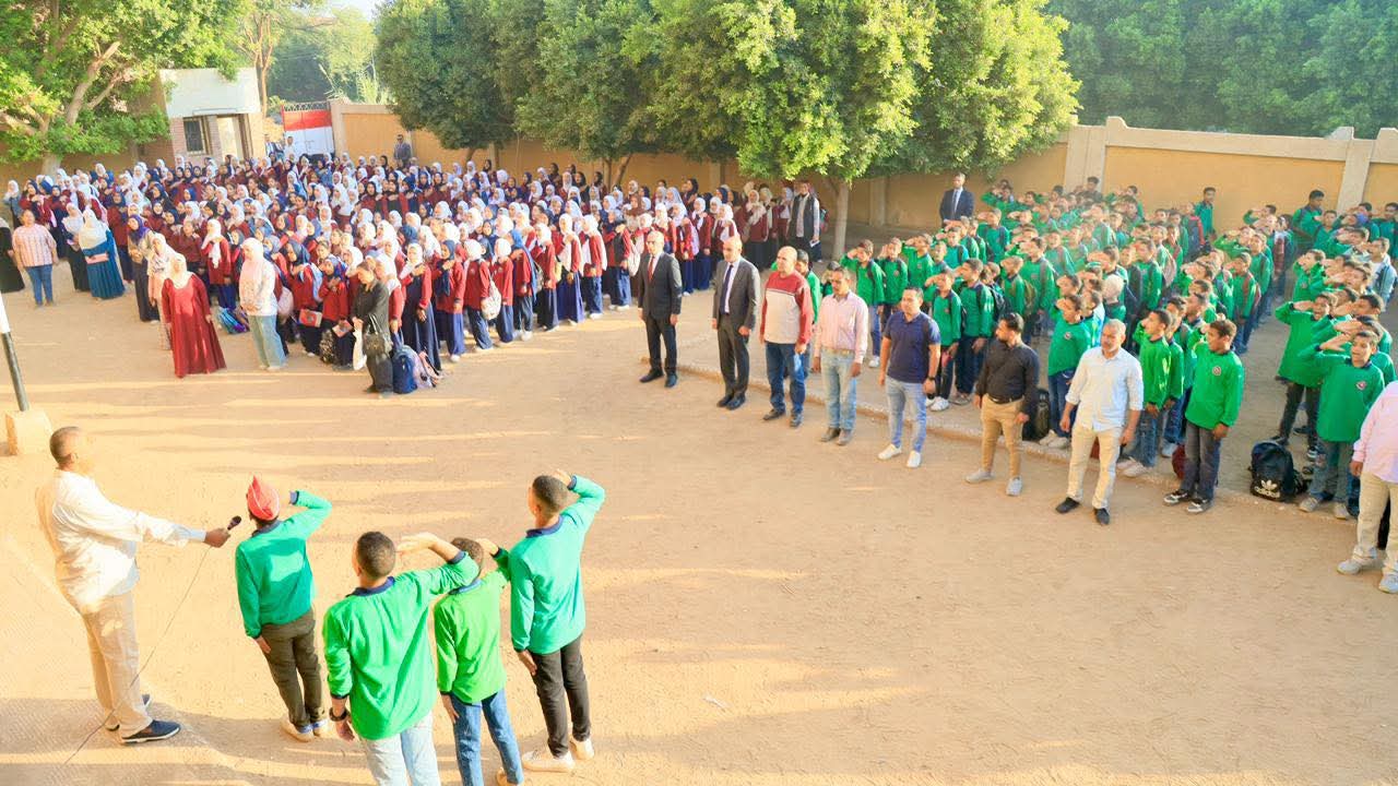 وحضر الوزير طابور الصباح واستمع إلى فقرات الإذاعة المدرسية وتحية العلم، مشيدًا بحسن التنظيم وروح الانضباط التي لمسها بين الطلاب والمعلمين.