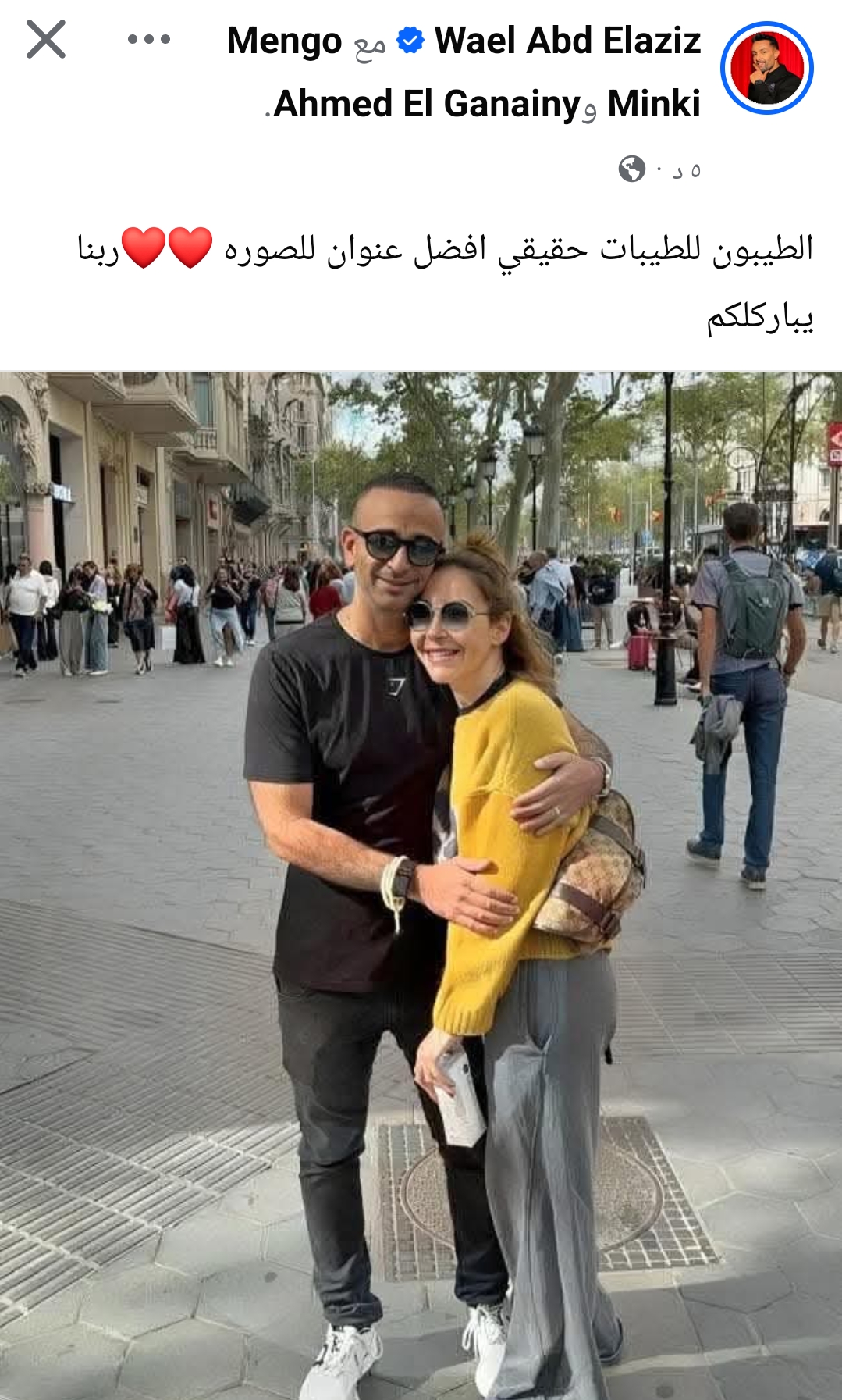 وشارك الفنان وائل عبد العزيز، صورة تجمع منة شلبي مع زوجها أحمد الجنايني، وذلك عبر حسابه الشخصي بموقع التواصل الاجتماعي فيسبوك.