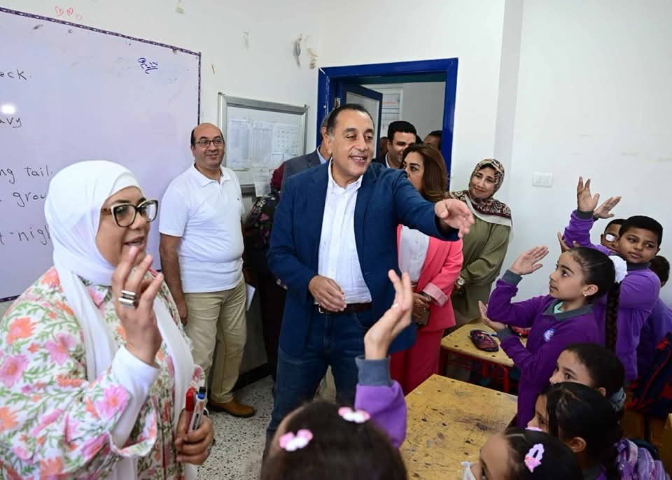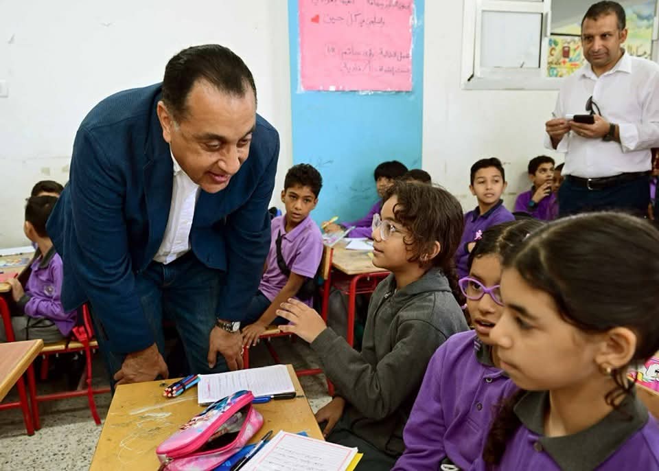 مدبولي يحاور طلاب رابعة ابتدائي في السويس حول منهج اللغة الإنجليزية