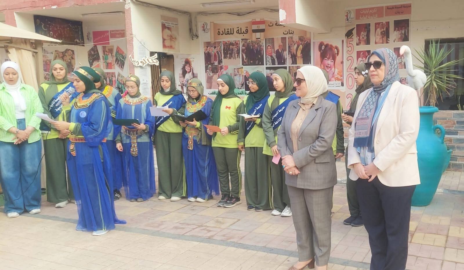 وكان في استقبالها جيهان عبد الرازق مدير عام الإدارة التعليمية، ومدير المدرسة وهيئة التدريس.