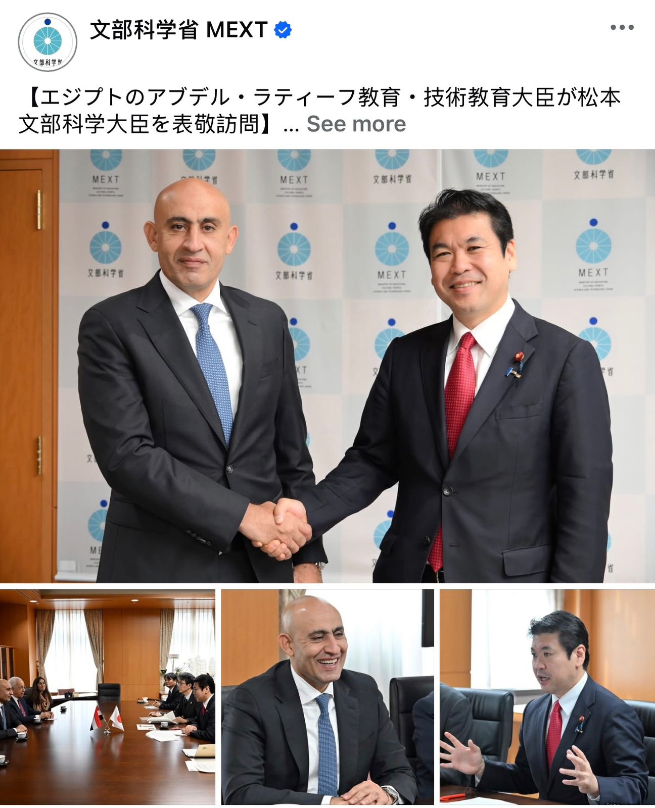 وجاء تصريح وزير التعليم والثقافة الياباني بالتزامن مع إبراز وزارة التعليم والثقافة والرياضة والعلوم والتكنولوجيا اليابانية، عبر صفحاتها الرسمية، لقاء السيد محمد عبد اللطيف وزير التربية والتعليم والتعليم الفني، خلال زيارته لطوكيو، مع نظيره الياباني في أولى لقاءاته الرسمية عقب توليه منصبه حديثا، مشيرة إلى أن اللقاء تناول تعزيز أواصر التعاون التربوي والتعليمي بين البلدين.