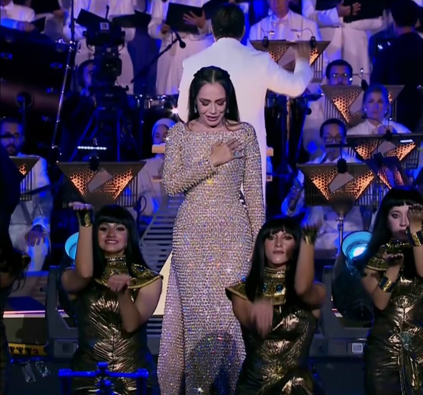 من تصميم إيلي صعب إلى الفن الفرعوني.. قصة فستان شريهان في حفل المتحف المصري الكبير (صور وفيديو)