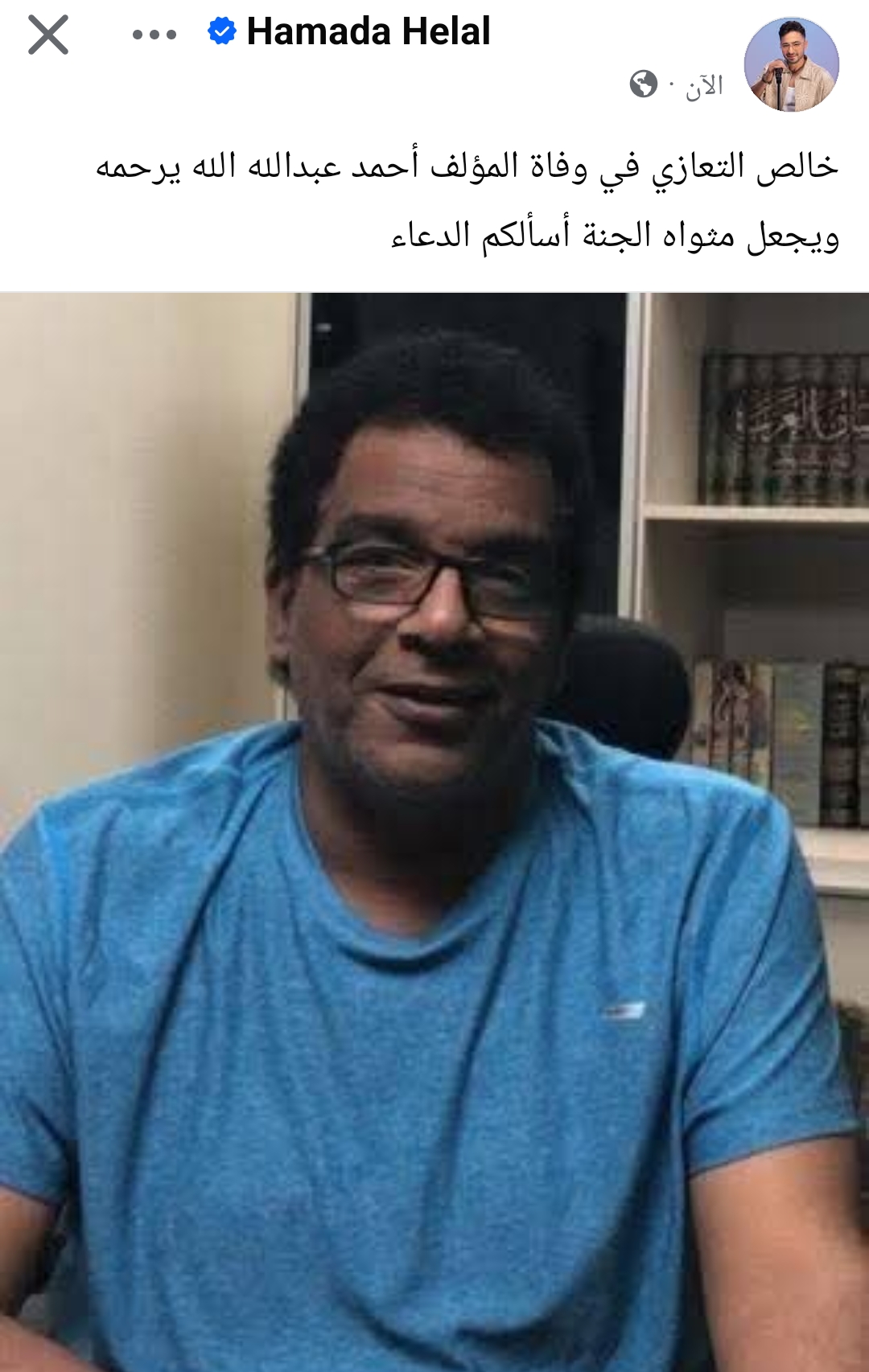وكتب حمادة هلال: “خالص التعازي في وفاة المؤلف أحمد عبدالله الله يرحمه ويجعل مثواه الجنة أسألكم الدعاء”.