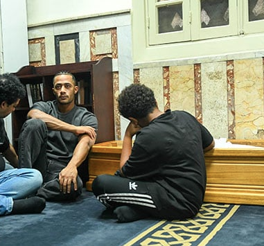 انهيار محمد رمضان بجوار جثمان والده داخل مسجد مصطفى محمود