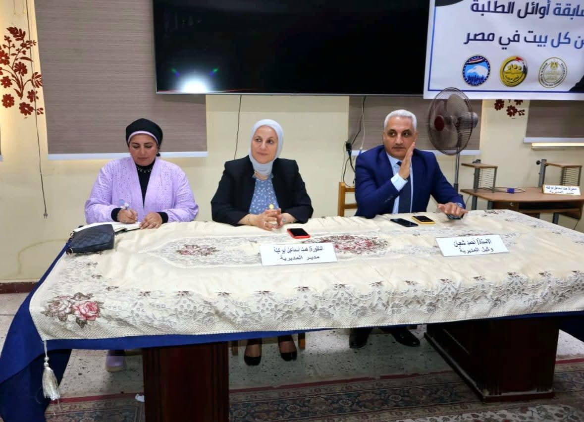 حضر الاجتماع كل من الأستاذ أحمد شعبان، وكيل المديرية، والأستاذة منيرة أسامة، مدير عام الشئون التنفيذية.