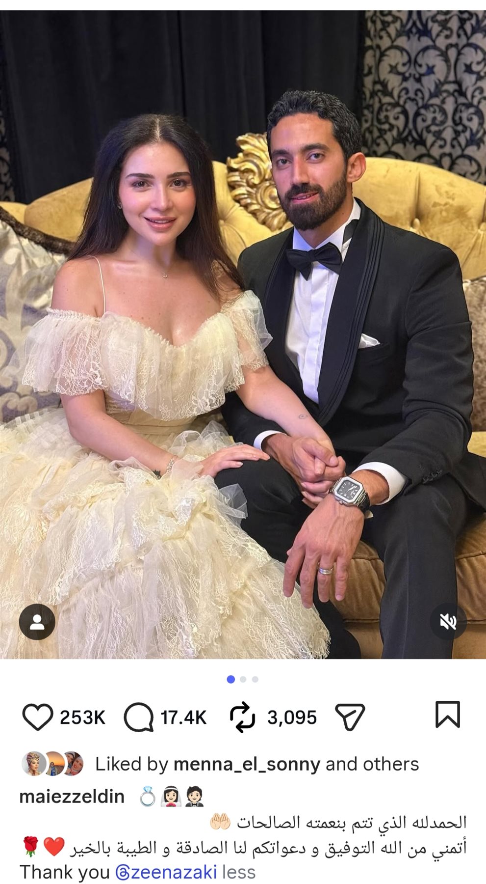 ونشرت «مي» صورًا من عقد القران، على حسابها بموقع الصور الشهير «إنستجرام»، وكتبت: «الحمد لله الذي تتم بنعمته الصالحات.. أتمنى من الله التوفيق ودعواتكم لنا الصادقة والطيبة بالخير».