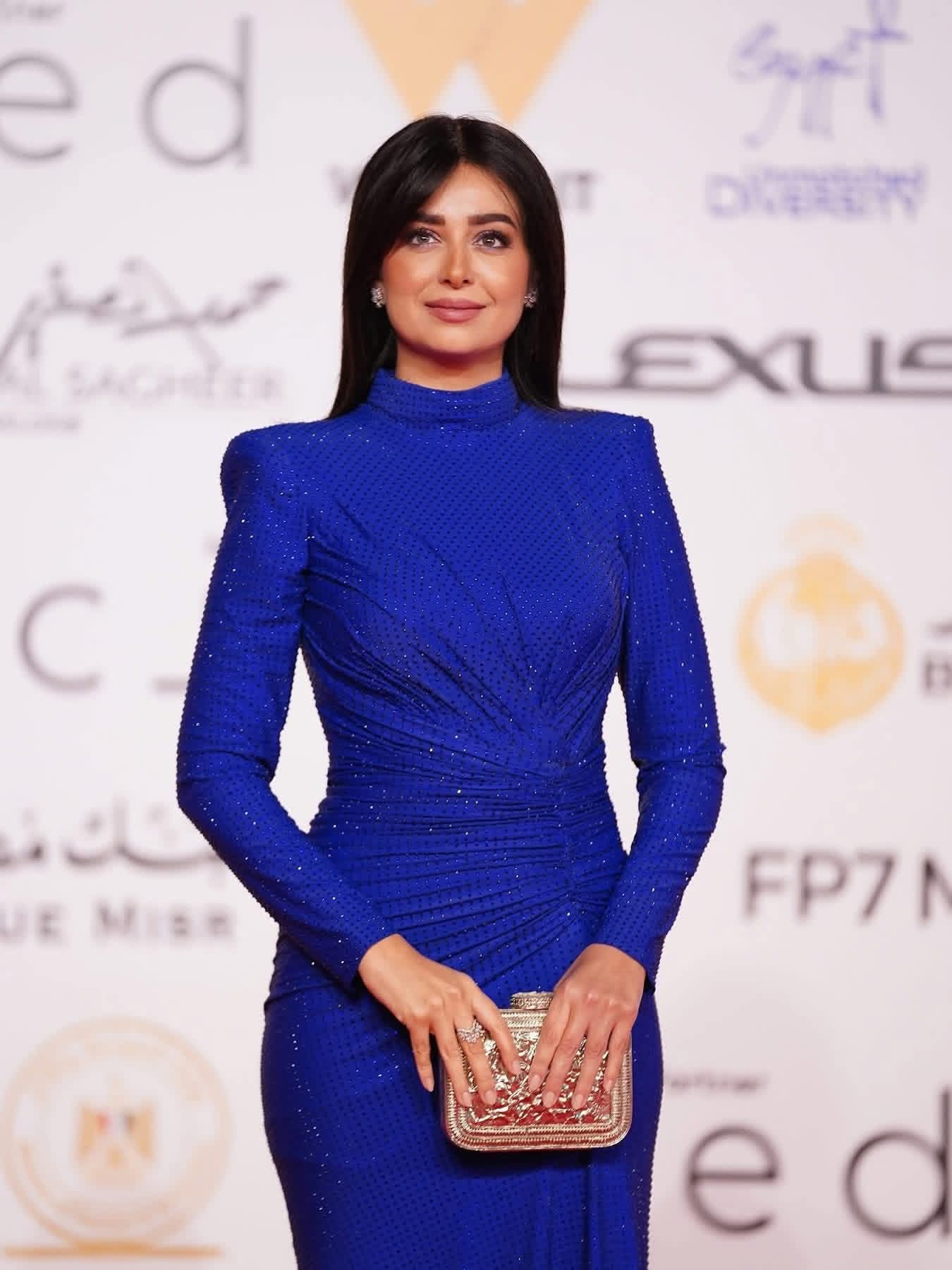 صبا مبارك بالأزرق في حفل افتتاح مهرجان القاهرة السينمائي