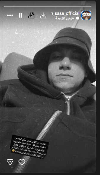 وأرفق صاصا الصورة برسالة تحمل دلالات واضحة عن حالته النفسية في هذه الفترة، قائلًا: "عارف اللي جاي مش أحسن حاجة، بس كل حاجة بتاعة ربنا، واللي ربنا عاوزه هيكون.. بس نخف كذب ونخف كلام، الناس بتتكلم كأنهم عايشين معانا".