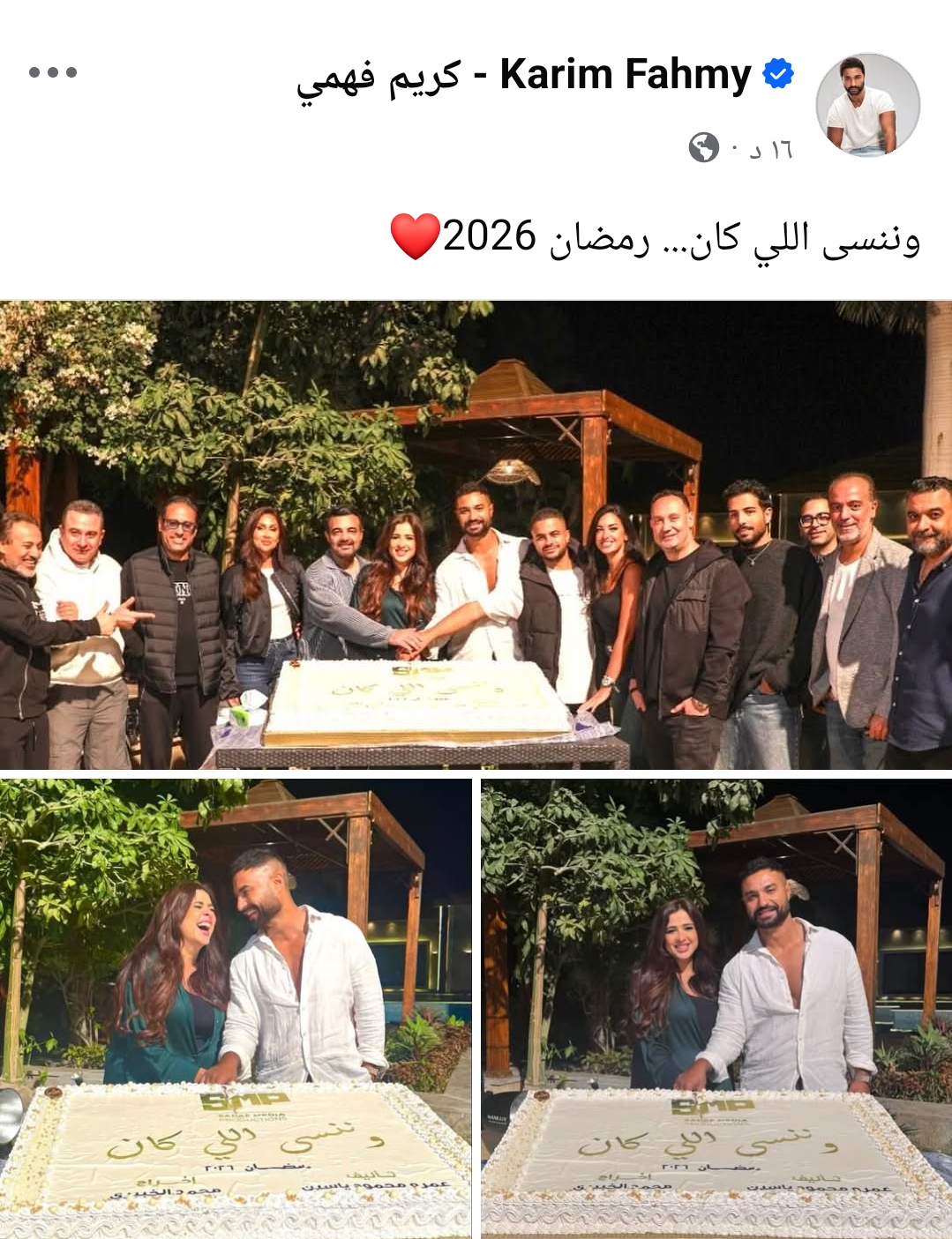 ونشر كريم فهمي صوره مع ياسمين عبد العزيز وهما يقطعان التورتة احتفالا ببدء تصوير المسلسل، وذلك عبر حسابه الشخصي بموقع التواصل الاجتماعي فيسبوك، وعلق قائلا: “وننسى اللي كان... رمضان 2026”.