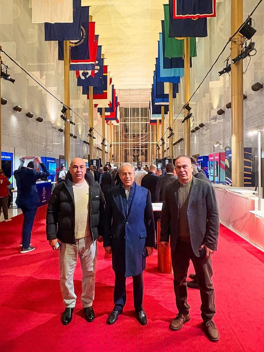 تواجد حسام حسن المدير الفنى لمنتخب مصر الأول، وإبراهيم حسن مدير المنتخب برفقة خالد الدرندلي نائب رئيس اتحاد الكرة أمام مقر البيت الأبيض بالعاصمة الأمريكية واشنطن، قبل ساعات من بدء مراسم سحب قرعة كأس العالم 2026، والتقطوا صورة تذكارية.