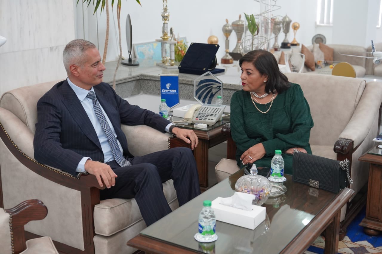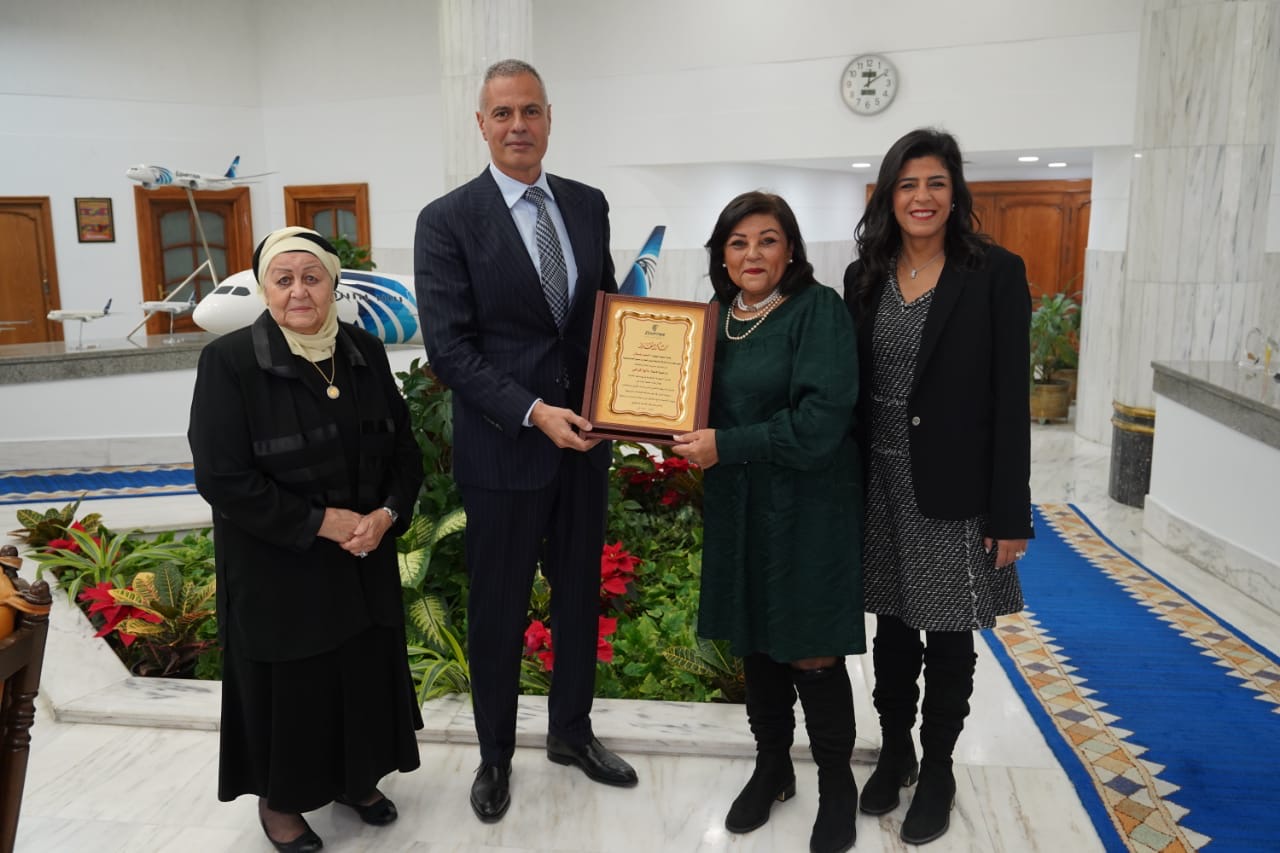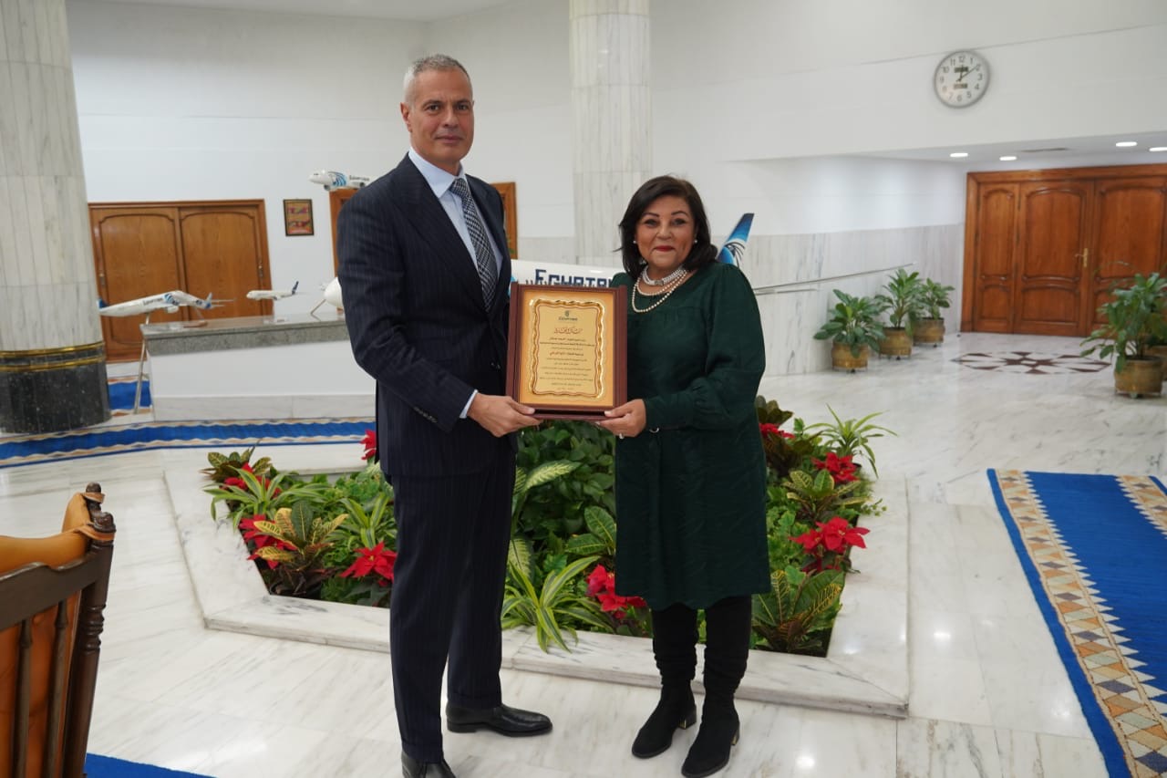 رئيس مصر للطيران يكرم داليا المراغي ويهديها درع الشركة تقديرًا لمسيرتها المهنية