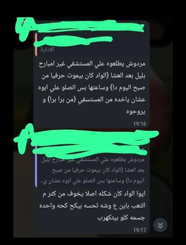 وأكد الطلاب في شكواهم أن زميلهم أدهم كان يعاني من تعب شديد، إلا أن المدرسة —وفقًا لروايتهم– رفضت منحه إذنًا للعودة لمنزله بسبب وجود امتحانات عملية و"جورنال".