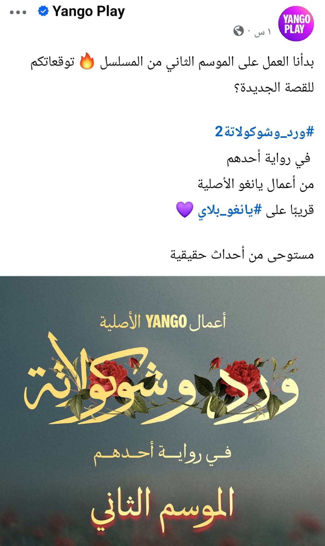 وكتب تعليقا: "بدأنا العمل على الموسم الثاني من المسلسل، توقعاتكم للقصة الجديدة؟، ورد وشوكولاتة 2، في رواية أحدهم، من أعمال يانغو الأصلية
