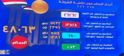 وبلغ إجمالي عدد المتقدمين 48063 شخصًا، بينهم 26262 من الحاصلين على الثانوية العامة أو ما يعادلها، و13828 من خريجي كلية الحقوق، و6900 من الحاصلين على مؤهلات جامعية، و1073 من الحاصلين على بكالوريوس تربية رياضية.