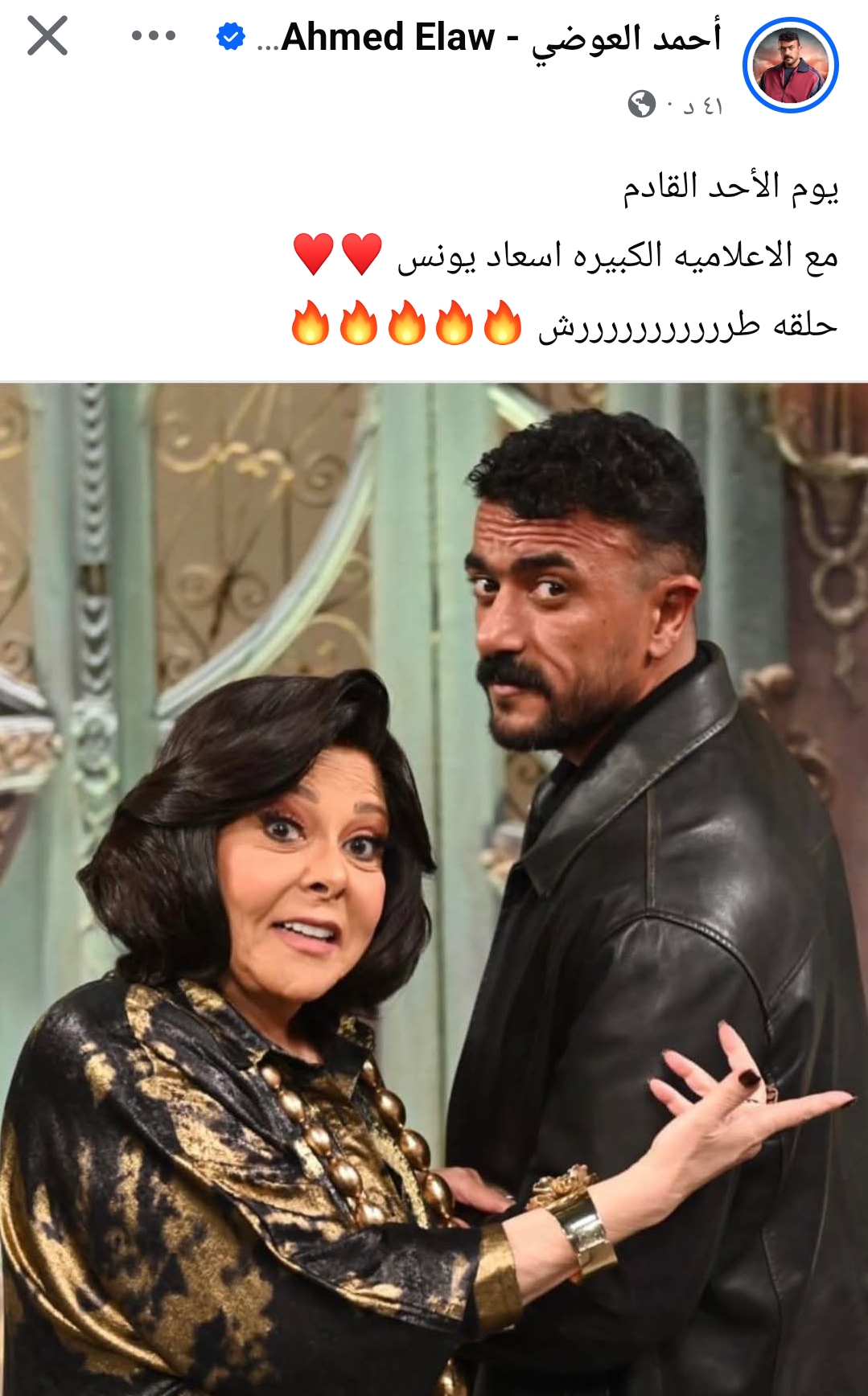 ونشر أحمد العوضي، صورة تجمعه بالإعلامية إسعاد يونس، عبر حسابه الشخصي بموقع التواصل الاجتماعي فيسبوك.