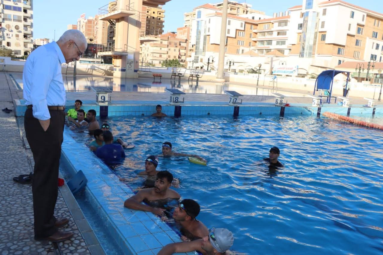 واطمأن على منظومة الأمن والسلامة داخل المجمع، وخاصة تواجد المنقذين المؤهلين على مدار اليوم، وتطبيق أعلى معايير الأمان في حوض التسابق وحمام الغطس، مؤكدًا حرص الجامعة على توفير بيئة تدريبية آمنة ومتطورة وفقًا لمعايير الاتحاد المصري للسباحة والغوص.